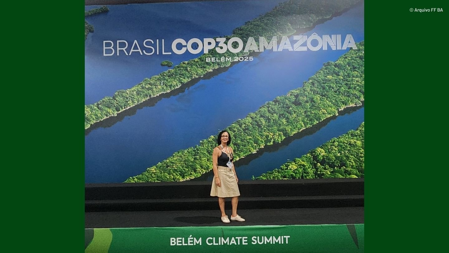 Representando o Fórum Florestal da Bahia (FF BA) e o IPÊ, Erica Munaro, secretária executiva do FFBA, acompanhou as negociações internacionais da COP30 e buscou pautar temas estratégicos para o sul e extremo sul da Bahia nos debates sobre florestas, restauração e salvaguardas socioambientais.